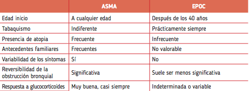 El asma es una enfermedad que puede manifestarse e iniciarse en cualquier momento de la vida. Ante la sospecha de asma se debe realizar un diagnóstico diferencial con otras enfermedades, en particular con la enfermedad pulmonar obstructiva crónica (EPOC).
