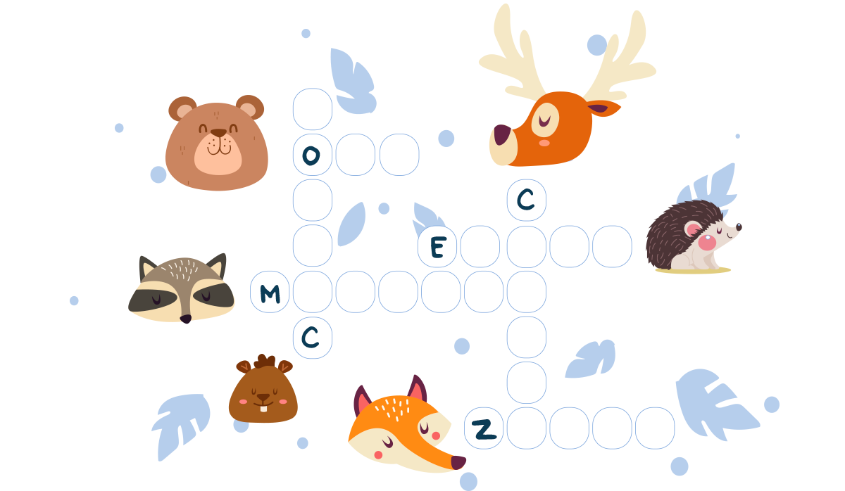 Completa el crucigrama con los nombres de los animales.